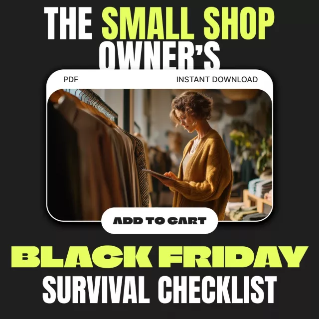 Stop guessing and start preparing like a pro. Download The Small Shop Owner’s Black Friday Survival Checklist today to unlock your most successful sales season yet. Learn exactly how Black Friday works for small shops and turn chaos into confidence — one organized step at a time.